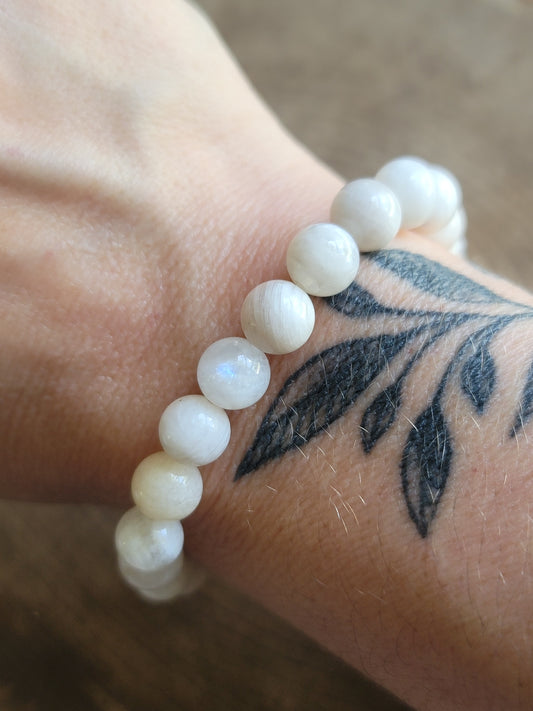 White Moonstone 8mm Beaded Bracelet: Divine Feminine Energy and Intuitive Wisdom
