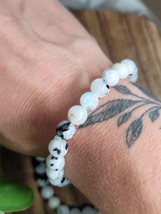 White and Black Moonstone 6mm Beaded Bracelet: Yin-Yang Harmony and Spiritual Balance