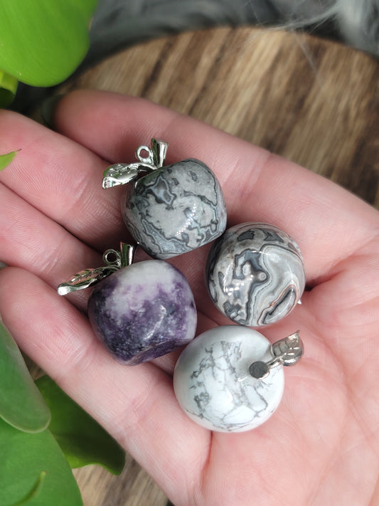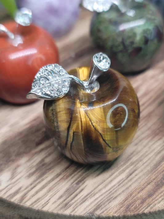 Mini Apple Crystal with Silver Leaf Charm: Symbol of Abundance and Wisdom