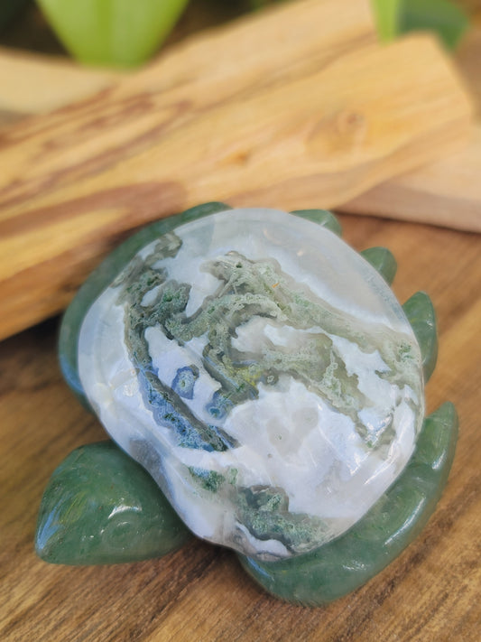 Green Aventurine Turtle Carving 3 Inch with Custom Crystal Shell for Luck Healing and Intentional Energy