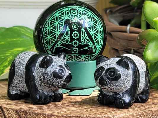 Obsidian Panda Figurine 2" for Protection Grounding and Shadow Work