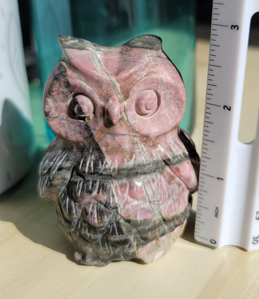 Rhodonite Owl Carving: Guardian of Compassion and Emotional Healing