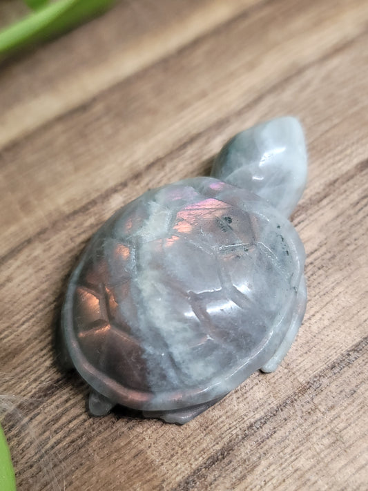 High Flash Labradorite Turtle Carving: Mystical Protection and Inner Strength