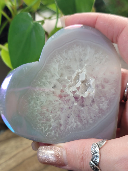 Aura Druzy Agate Heart on Silver Stand – Fresh Energy, Radiance & Spiritual Glow