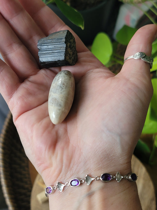 Spiritual Reset Crystal Bundle with Amethyst Bracelet Moonstone and Black Tourmaline