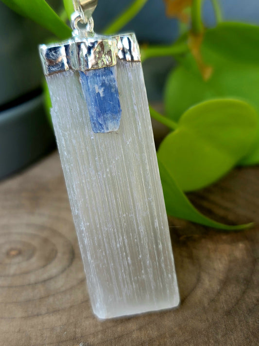 Raw Kyanite & Selenite Necklace – Energy Cleansing & Spiritual Protection