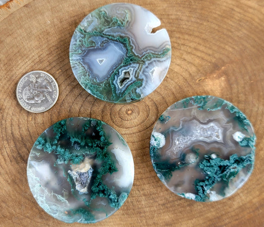 Druzy Moss Agate Coaster: Natural Serenity and Grounding Energy