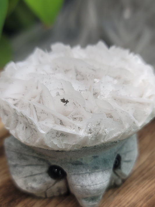 Rose Calcite Specimen UV Elephant Carving: Gentle Love and Radiant Energy