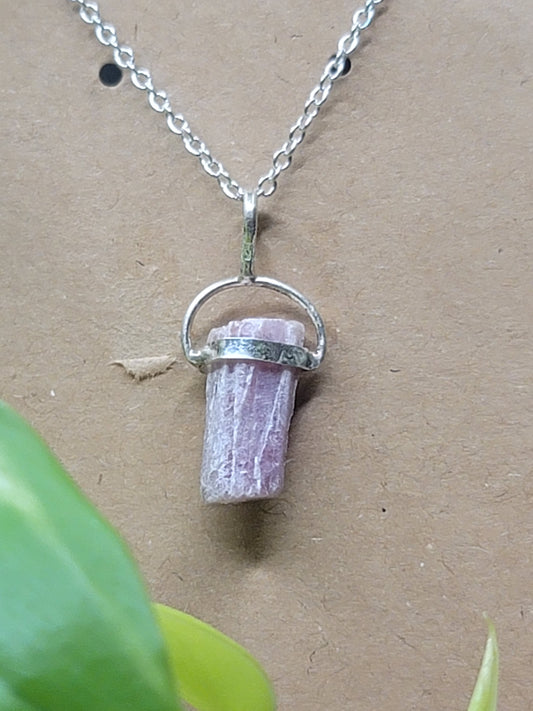 Raw Pink Tourmaline Pendant – Heart-Healing Crystal Necklace