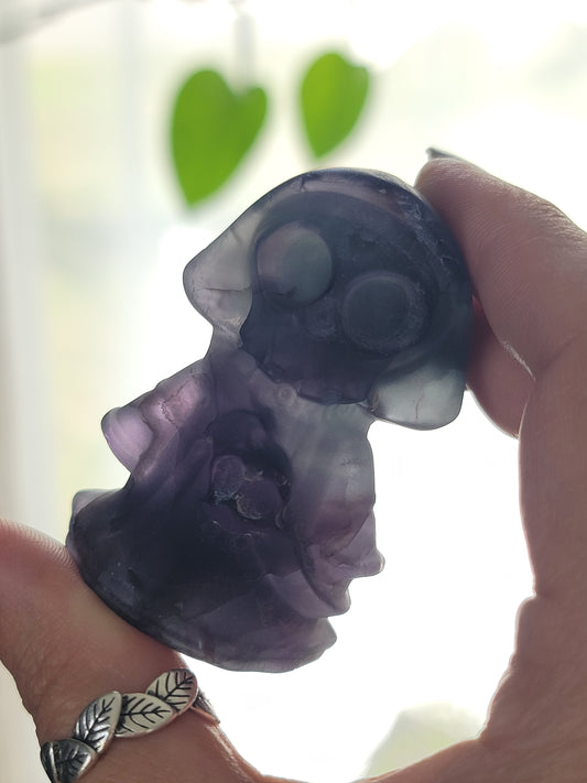 Fluorite Reaper Carving for Shadow Work Transformation and Psychic Protection
