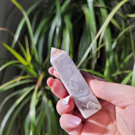 Mexican Crazy Lace Agate Tower: Radiant Patterns of Joyful Energy