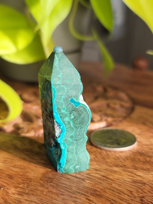 Chrysocolla and Malachite Tower: Harmonious Blend of Soothing and Healing Energies