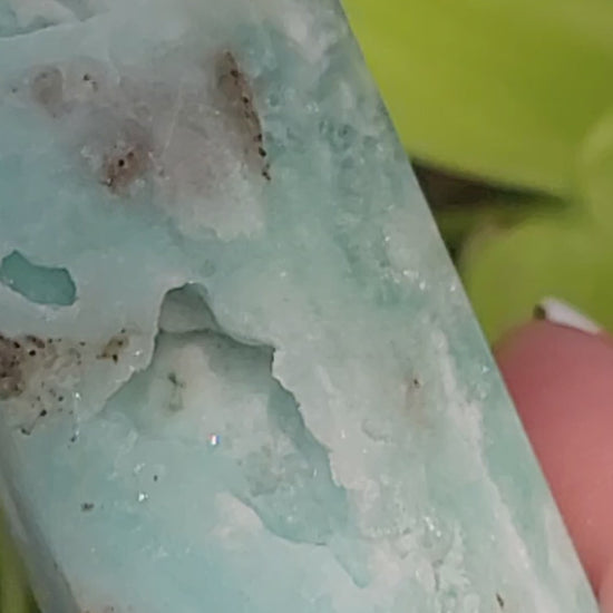 Place your Blue Hemimorphite point with the druzy side facing you during rituals or breathwork, let the sparkle mirror the light you're stepping into.