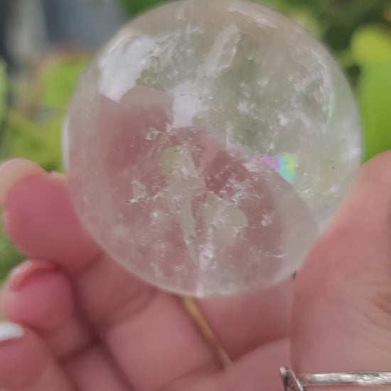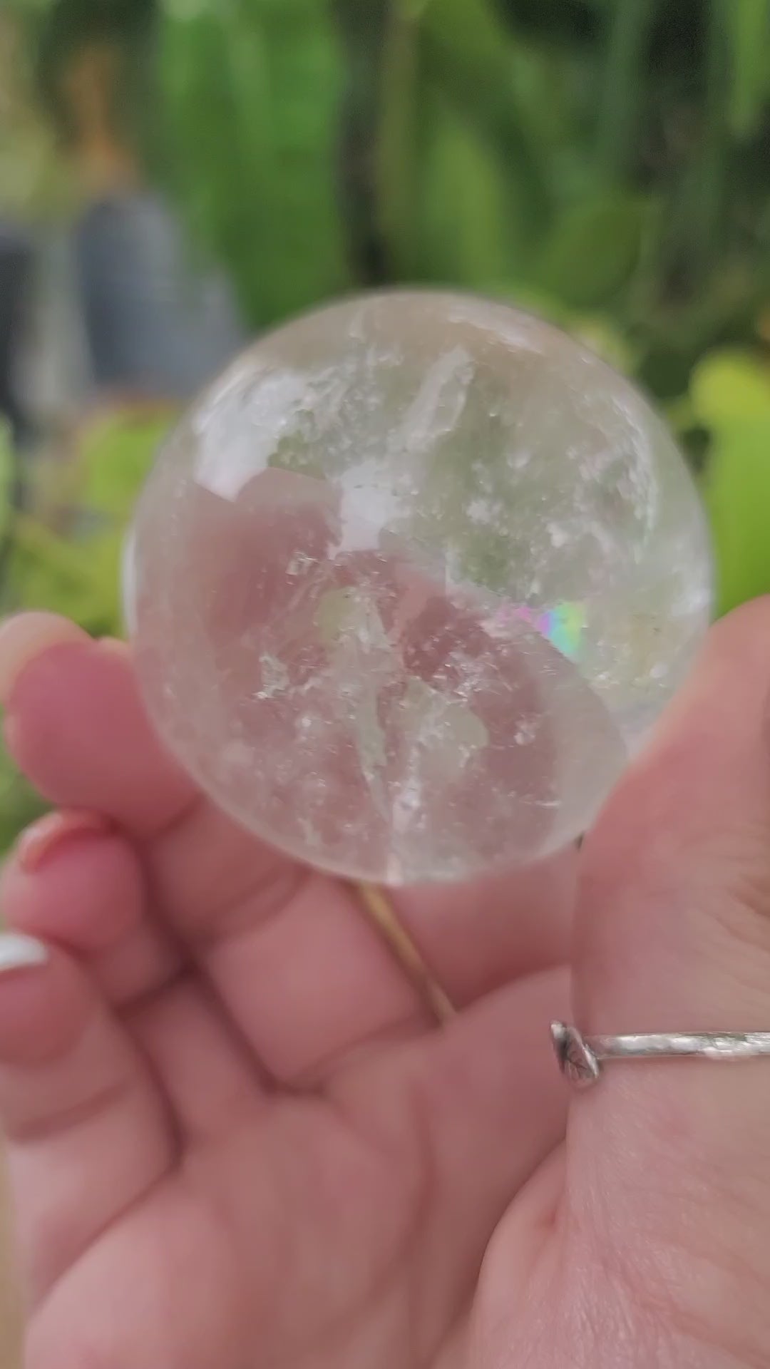 This 2 inch optical fluorite sphere is a high-clarity beauty that brings powerful energy amplification and spiritual alignment. With its nearly transparent body and subtle internal rainbows or veils, optical fluorite is known for its ability to enhance focus, sharpen intuition, and support both mental clarity and energetic flow. Perfect for altars, meditation spaces, or manifestation grids, this sphere is your go-to for energetic precision and spiritual light.